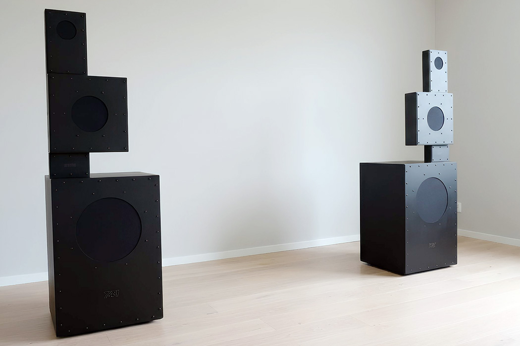 "We're no strangers to the strange art of deconstructing loudspeaker, thanks to 741's Mumbai debut earlier this year. The concept that emerged from a dream has been executed with gold embellishments and a seven-piece design that challenges every rule in the speaker playbook. The floorstanding tweeters are supposed to be placed behind the listener while the midrange modules take up the space usually occupied by the front L/R speakers. What looks like a centre channel is actually a mid-woofer and two separate subwoofers find their place flanking the listening position. All of this careful positioning is because the 741 system is devoid of any DSP or active EQ and relies solely on the arrival time of the sound from all the different drivers.